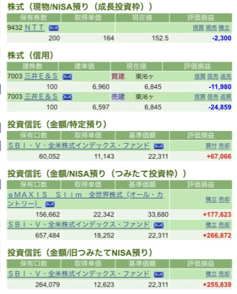 現在保有している主な投資商品は以下の通りです。